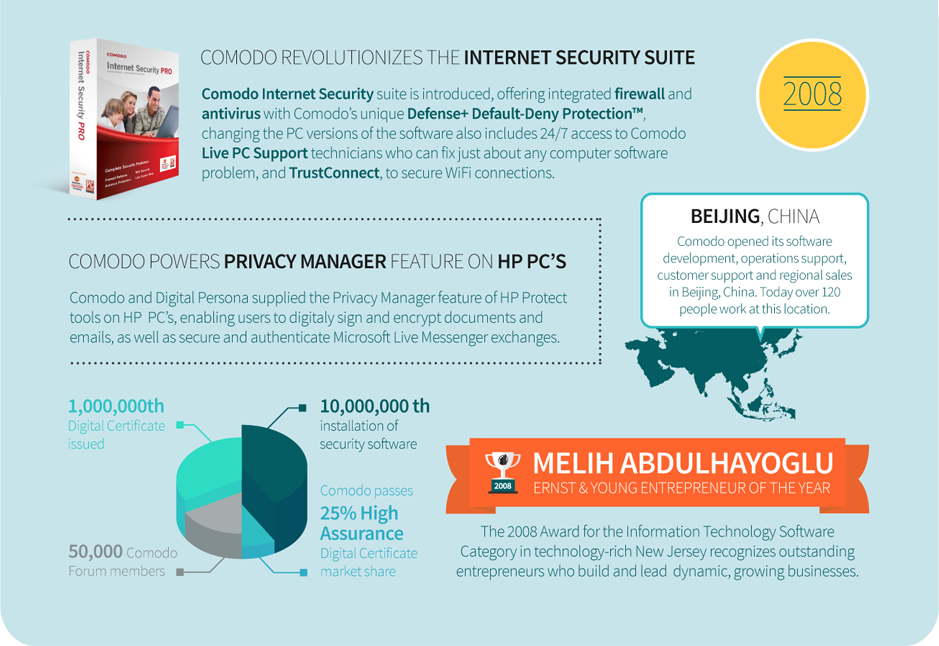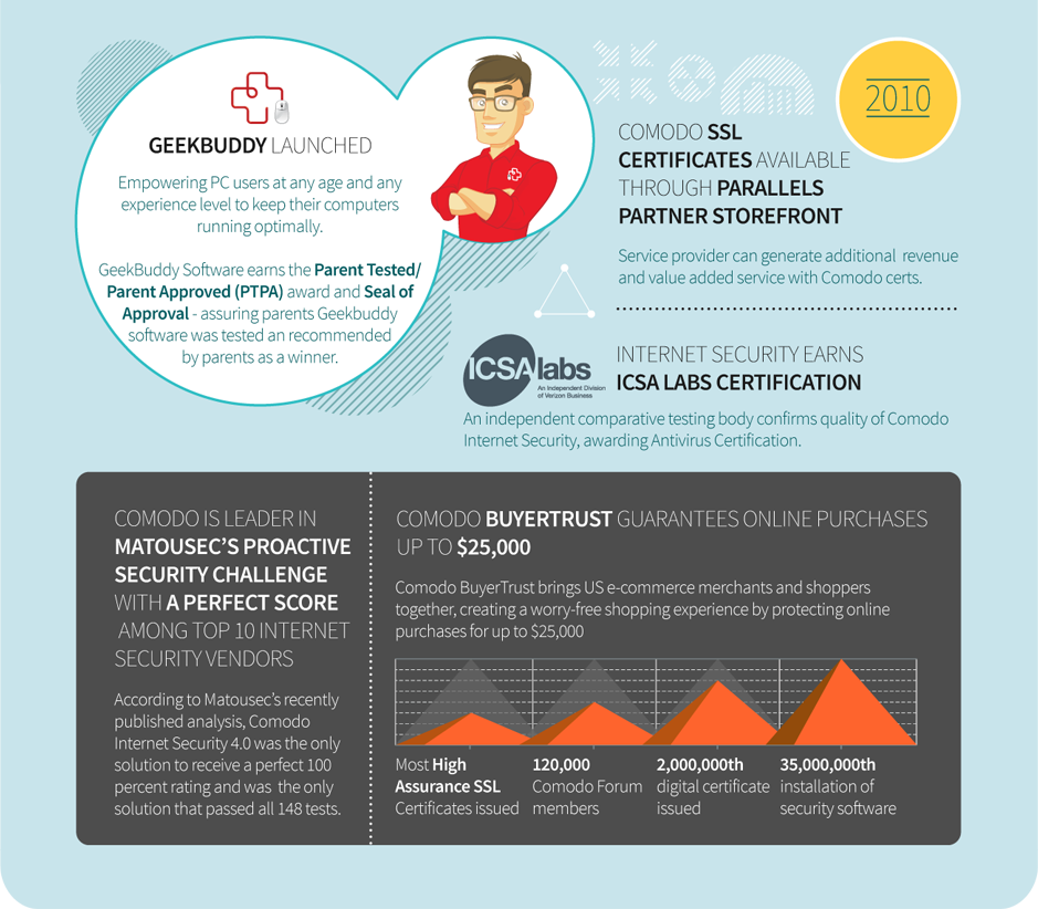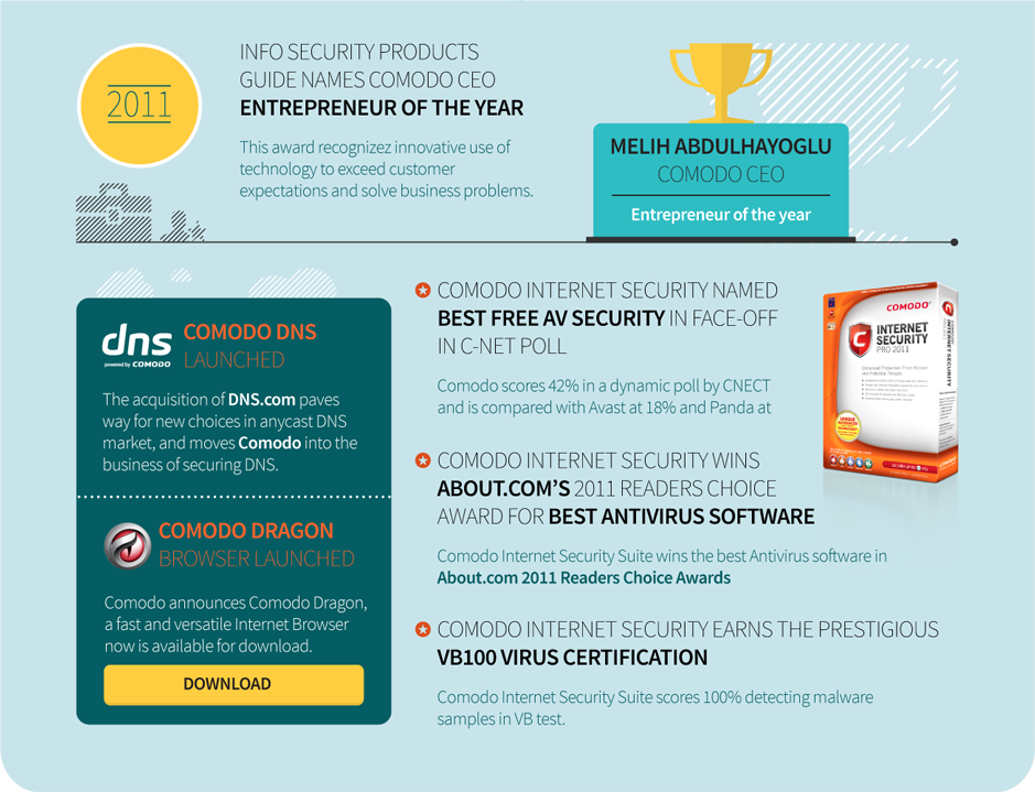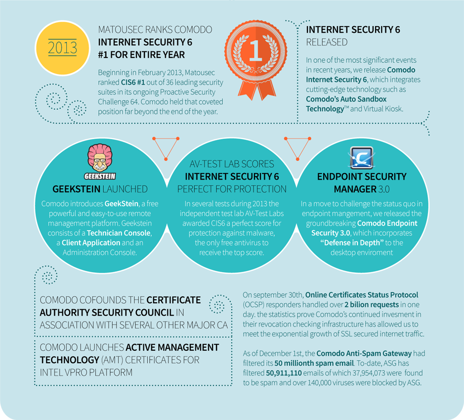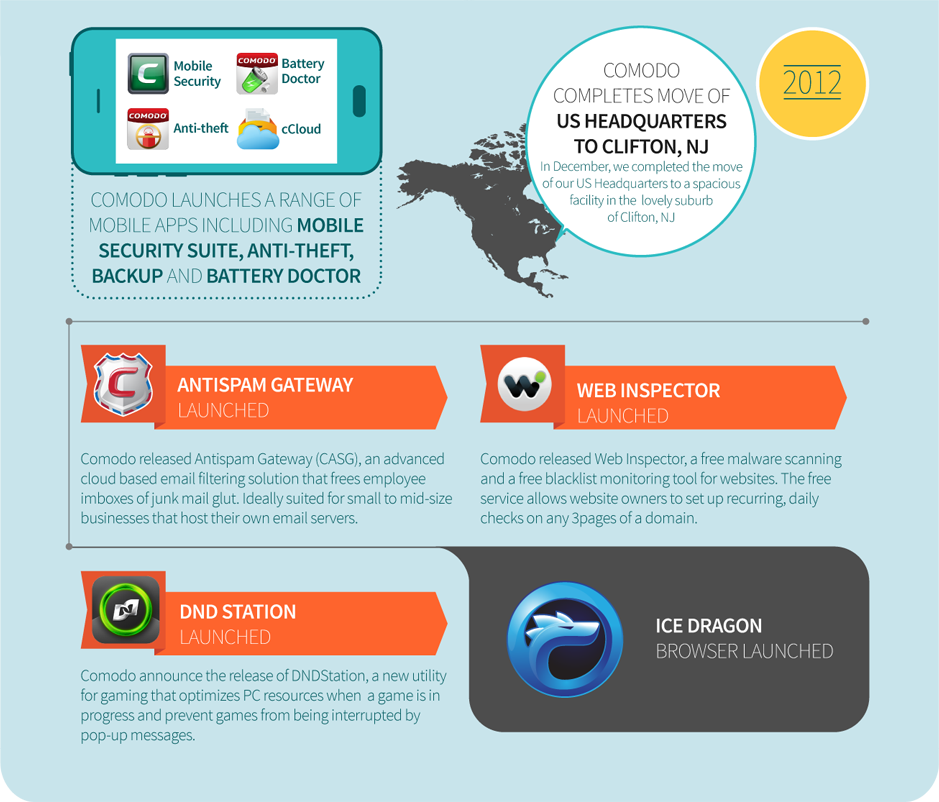 2011Comodo launches a range of mobile apps including Mobile Security Suite, Anti-Theft, Backup and Battery Doctor